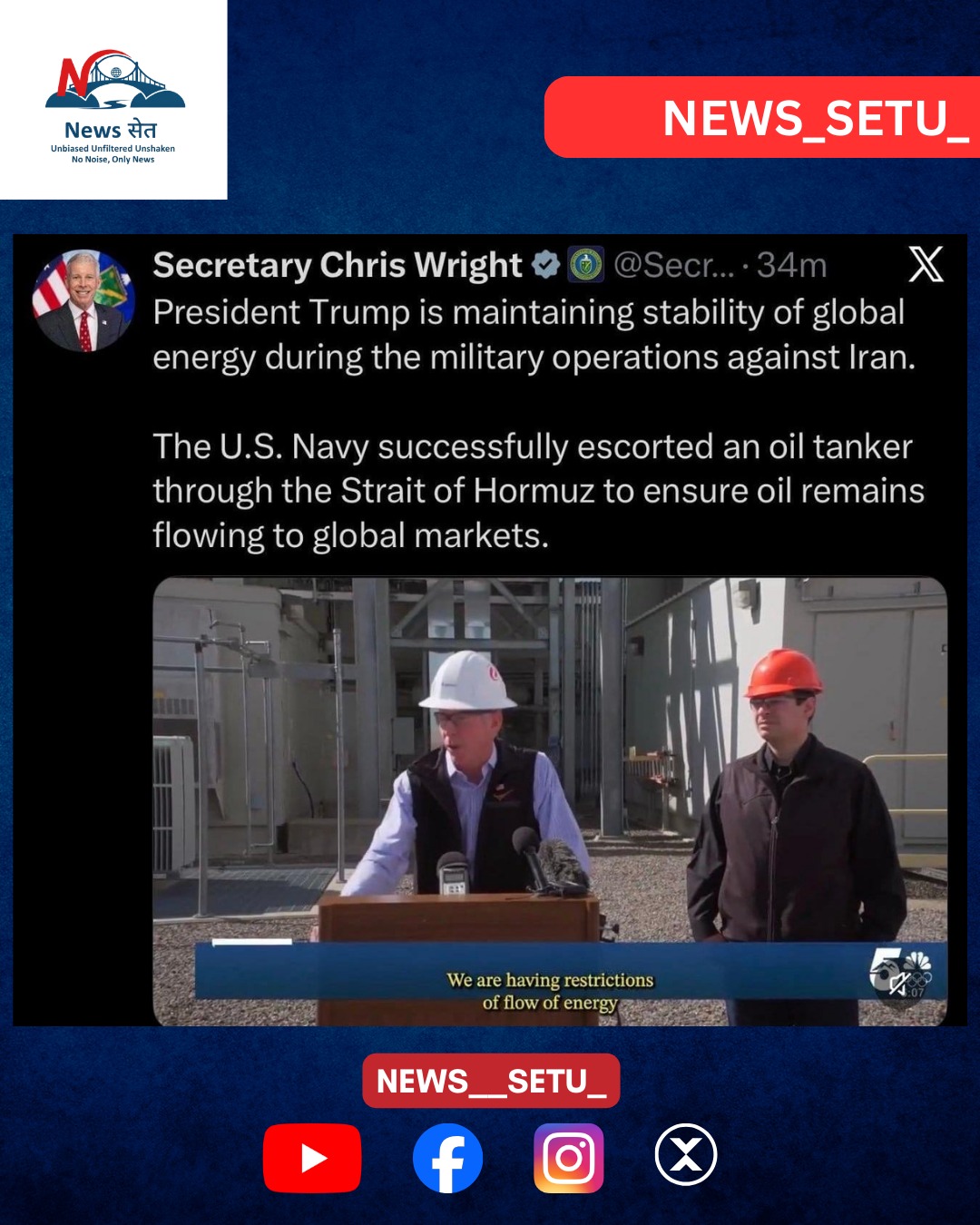 The operation was carried out to ensure that oil shipments continue to flow to global markets despite the ongoing military operations involving Iran. Wright noted that maintaining stable energy supply lines remains a priority for Washington during the conflict.