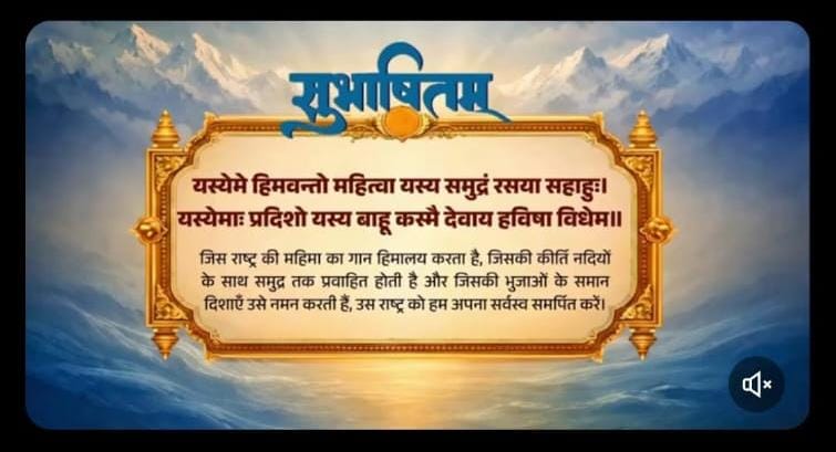 Prime Minister Narendra Modi on Tuesday shared a Sanskrit Subhashitam emphasizing the spirit of total dedication to the nation and humanity. Posting on X, Modi underscored the idea of “sarvasva samarpan” (complete surrender), describing it as a consciousness in which the nation and the welfare of humanity remain paramount. The verse quoted by the Prime Minister reads: “यस्येमे हिमवन्तो महित्वा यस्य समुद्रं रसया सहाहुः। यस्येमाः प्रदिशो यस्य बाहू कस्मै देवाय हविषा विधेम॥” Explaining its essence, Modi noted that the Subhashitam reflects an offering of one’s entire being to the nation—whose grandeur is symbolized by the Himalayas, whose vitality flows through rivers into the ocean, and whose strength is likened to the directions themselves. The Prime Minister also invoked the legacy of Narendra Modi, highlighting that the philosophy resonates with the ideals of Antyodaya, a doctrine centered on uplifting the last person in society. He paid tribute to Deendayal Upadhyaya, describing him as a pioneer of Antyodaya who dedicated his life to empowering every citizen. In his message, Modi stated that such devotion represents a guiding principle for national service, where collective progress and human welfare stand above individual interests. The post drew attention on social media, with many users reflecting on the cultural and philosophical significance of the Sanskrit verse and its contemporary relevance.