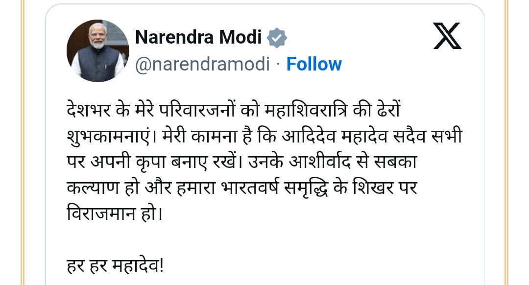 Mahashivratri, one of the most revered Hindu festivals, symbolizes devotion, introspection, and the celebration of Lord Shiva. The Prime Minister’s greetings were widely welcomed, reflecting the broader national observance of the sacred day.