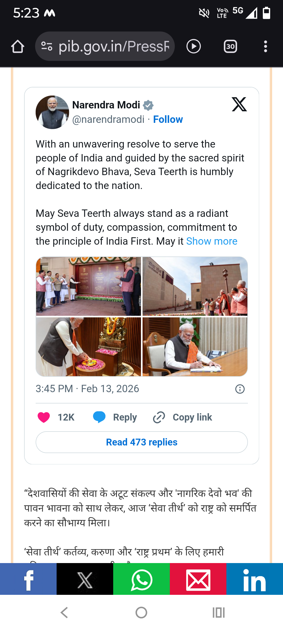 On this auspicious occasion, we express our heartfelt gratitude to the Prime Minister and convey our firm belief that Seva Teerth will inspire generations to come and accelerate the resolve of building a Viksit Bharat.